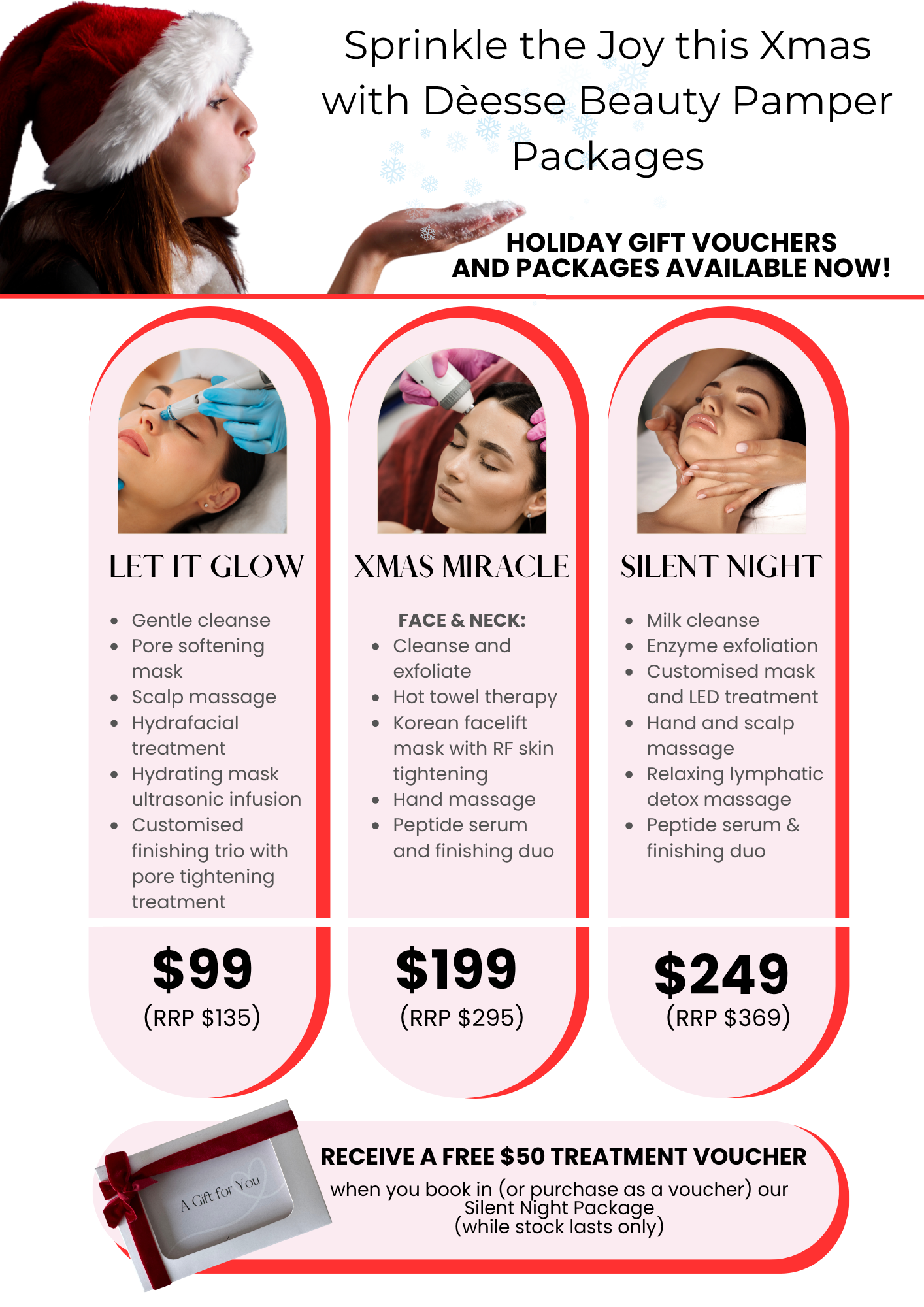 Celebrate the season with our limited-edition Déesse Beauty Christmas Pamper Packages — the perfect way to treat yourself or someone special.